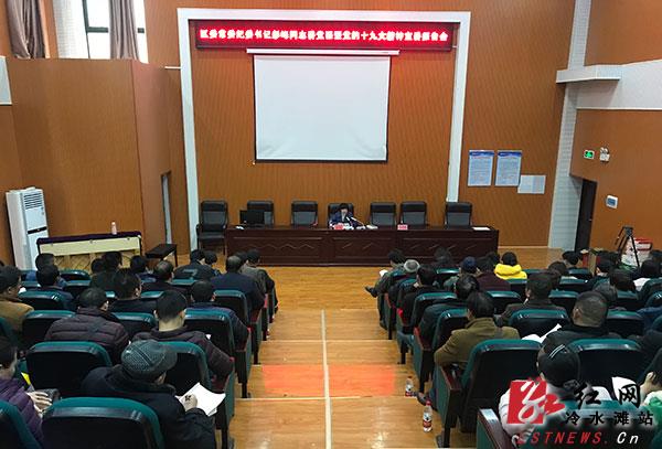 冷水滩区委常委、纪委书记彭峰为曲河街道办事处基层党员宣讲党的十九大精神