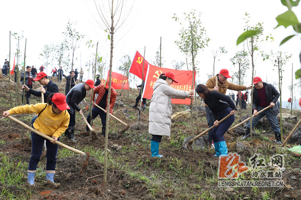 红网时刻3月12日讯(通讯员 陈雨航)春风吐绿,草木萌新。3月12日上午,在冷水滩区高溪市镇易家桥村的山坡上,冷水滩区纪委监委纪检监察干部正忙于投身“植树扬清风 造林树正气”义务植树造林活动中,用实际行动传递绿色能量,为推进乡村振兴贡献力量。