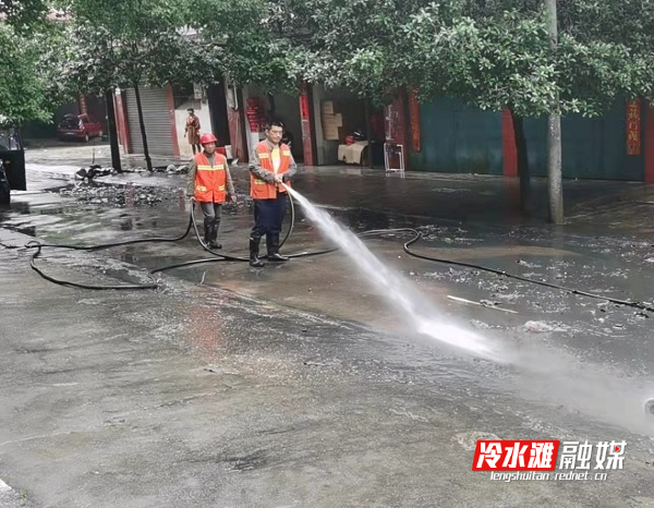 冷水滩融媒4月25日讯(记者 李秋燕 通讯员 罗印海 蒋玉)近日,冷水滩区多次突降暴雨并伴随大风,造成行道树倒伏断枝、道路多处低洼地带积水和大量污泥等安全隐患,给居民出行带来不便。为扎实做好雨后清理工作,冷水滩区环卫和园林中心立即启动应急预案,迅速组织1200余名工作人员,全方位进入“迎战”状态,及时清理倒伏断枝、冲洗垃圾和淤泥,确保尽快恢复道路畅通,全力保障人民群众财产和出行安全。