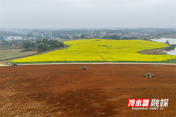 在冷水滩区伊塘镇永州市柑桔示范场四工区,农机轰鸣作响,多台大型机械联合作业,高效完成翻耕、平地、施肥、起垄等作业,为红薯适时播种、稳产丰产打下坚实基础。作为冷水滩区旱粮种植示范基地,这里立足湘南红壤旱地特点,通过科学筛选适配品种、精准规划茬口衔接,创新探索“甘薯+秋鲜食玉米+菜油两用油菜”轮作模式,成功破解红壤酸性强、肥力不足的种植难题,实现红壤旱地“一年三收”,让闲置旱地变身“聚宝盆”,大幅提升土地利用效率和种植效益。