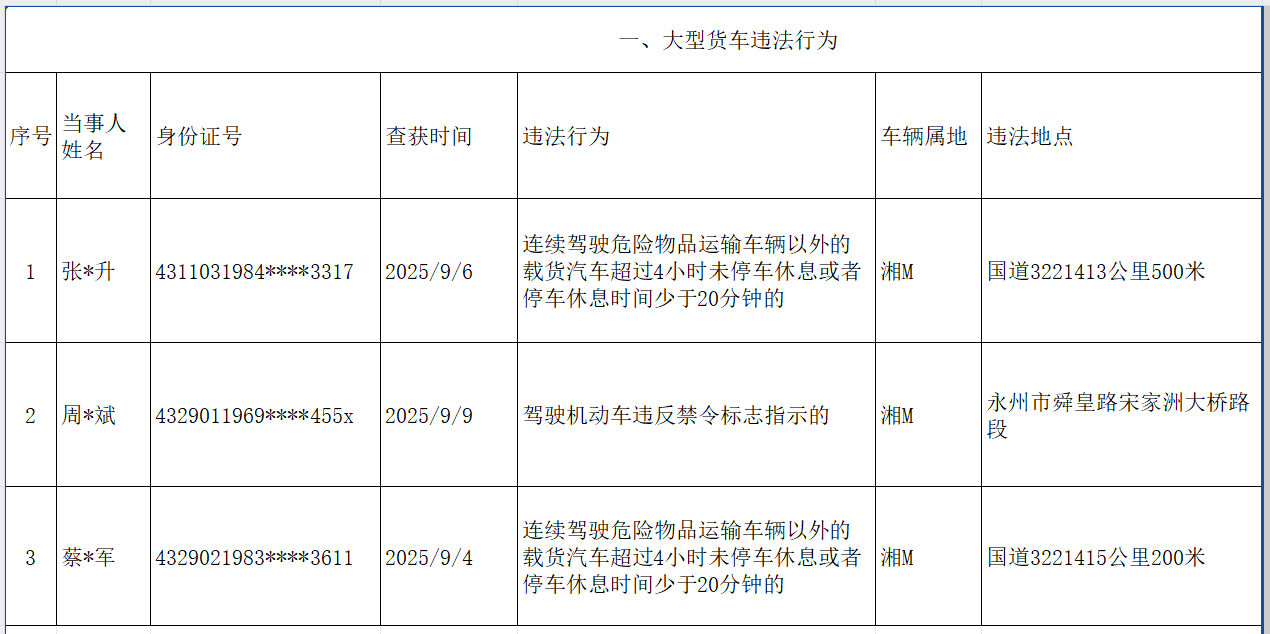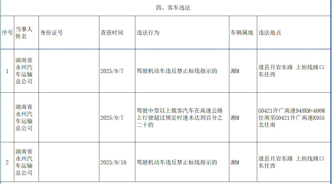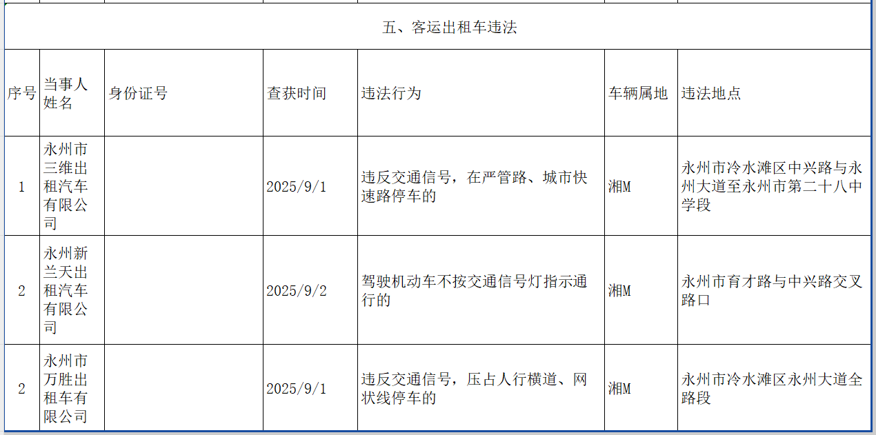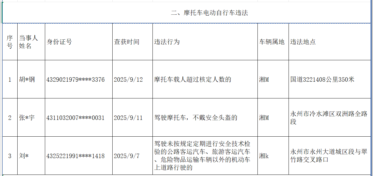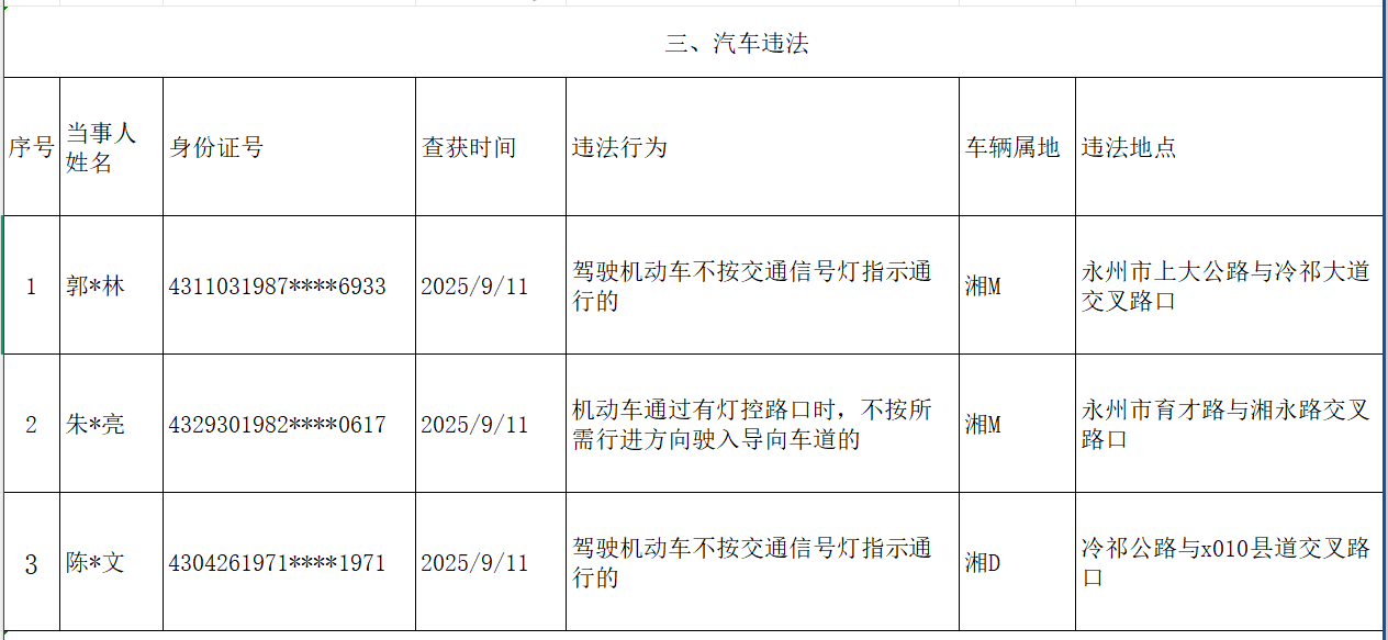 为进一步深化交通事故预防“减量控大”工作,营造安全文明、畅通、有序的道路交通环境,永州市公安局交警支队冷水滩大队根据近期中心城区交通安全情况,通报曝光2025年 09月01日至2025年09月30日中心城区交通违法的企业、单位及车辆。