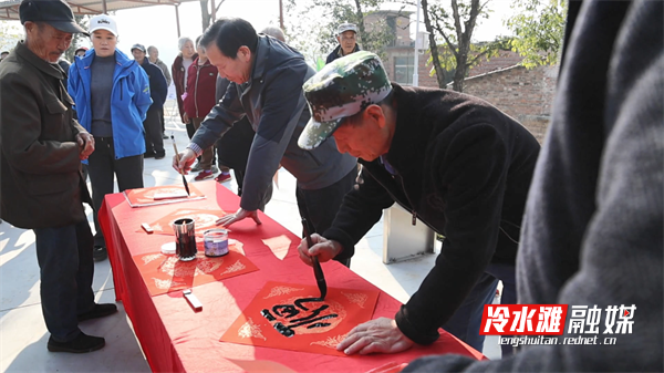 书法爱好者为村民们写福送福(蒋彦斌 摄)