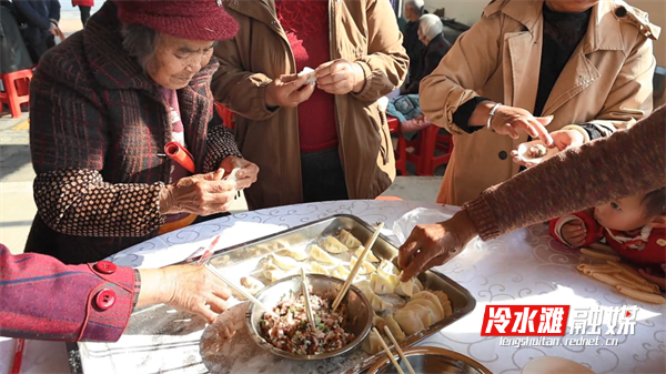 随后,村民们齐聚一堂,一同包饺子、吃羊肉,共话今年村里的新变化、新发展。热气腾腾的饺子和香气扑鼻的羊肉端上桌,村民们围坐在一起,吃得津津有味,暖意在每个人心中蔓延。龙江桥村村民张满云开心地说:“今年是我们龙江桥村第三次活动了,大家聚一起包饺子、炸油炸粑粑等,欢聚一堂,好开心好开心,非常开心!”